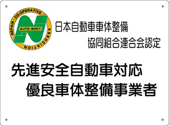 平成31年2月8日に、日本自動車車体整備協同組合連合会(日車協)の自主認定制度「先進安全自動車対応優良車体整備事業者」に認定されました。